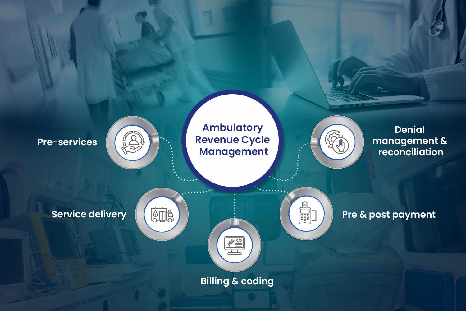 An ambulatory service provider deals with emergency medical services. Ambulatory revenue cycle management comprises the collection of revenue from patients and the rendering of services. Here are some key components of ambulatory revenue cycle management: